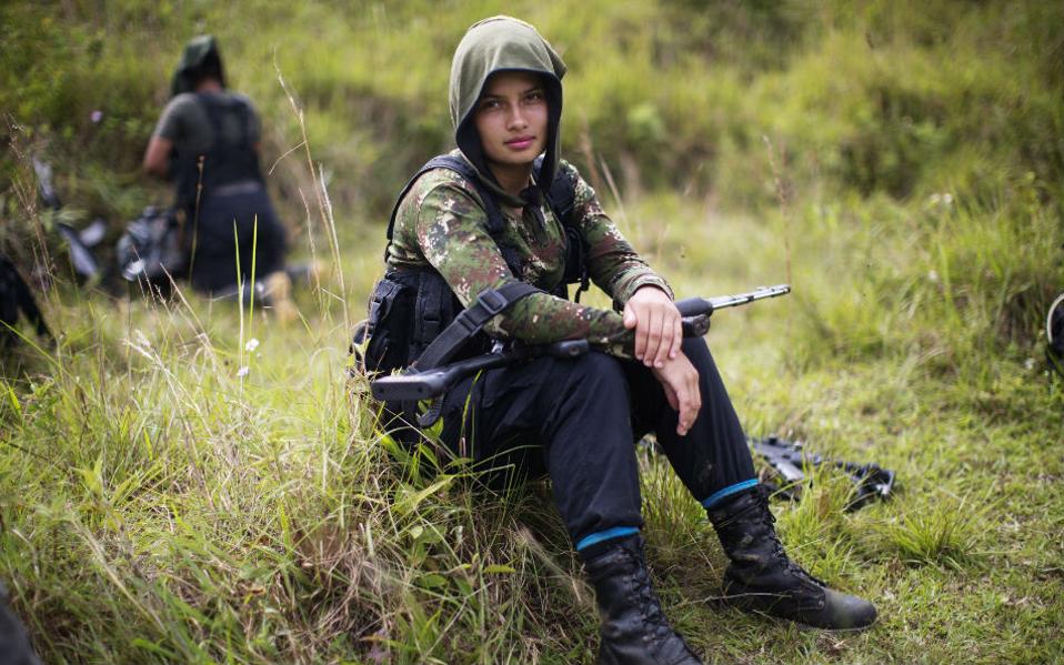 Στα όπλα. Η εικοσάχρονη Juiliana ποζάρει αγκαλιά με το όπλο της κάπου στις Ανδεις στην επαρχία Antioquia της Κολομβίας. Και εκείνη όσο και οι άνδρες συναγωνιστές της, εντάχθηκαν στις Επαναστατικές Δυνάμεις της Κολομβίας (FARC) ορμώμενοι περισσότερο από τις προσωπικές τραγωδίες και βιώματα παρά από τις πολιτικές πεποιθήσεις. Για την νεαρή Juliana τα βουνά υπήρξαν το καταφύγιο της μετά τον βιασμό από τον πατριό της.