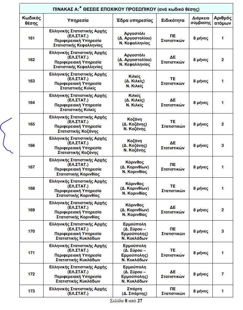 5 θέσεις (8μηνα) στην Ελληνική Στατιστικής Αρχής (ΕΛ.ΣΤΑΤ.) Περιφερειακή Υπηρεσία Στατιστικής Κοζάνης.